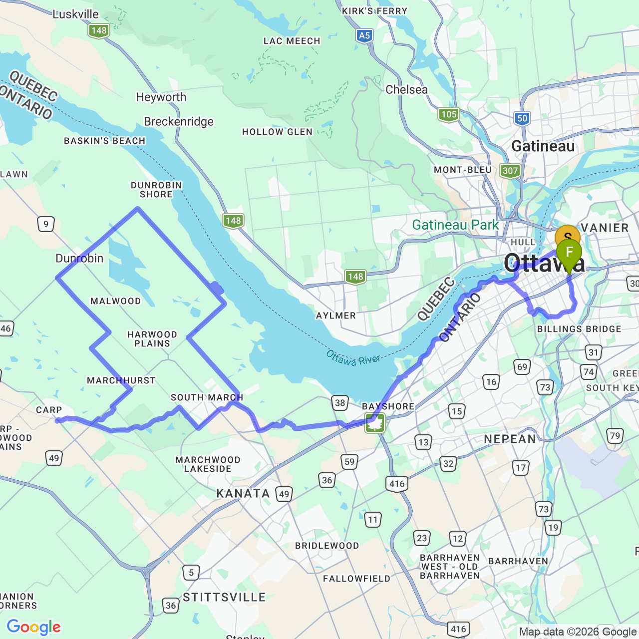🗺️ Towards Carp (From Downtown)